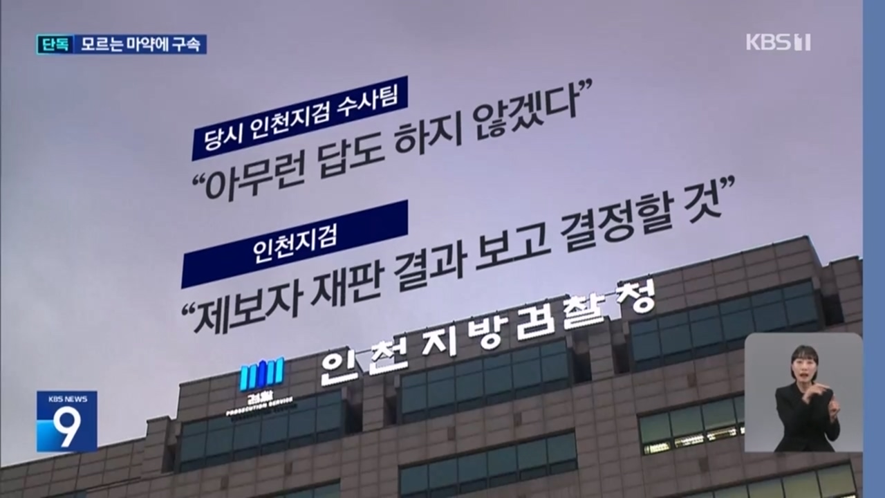 당시 인천지검 수사팀은 KBS 질의에 "아무런 답도 하지 않겠다"고만 했고, 인천지검은 "제보자의 무고 혐의 재판 결과를 보고 공소 취소 여부를 결정할 것"이라고 공식 입장을 밝혔습니다.