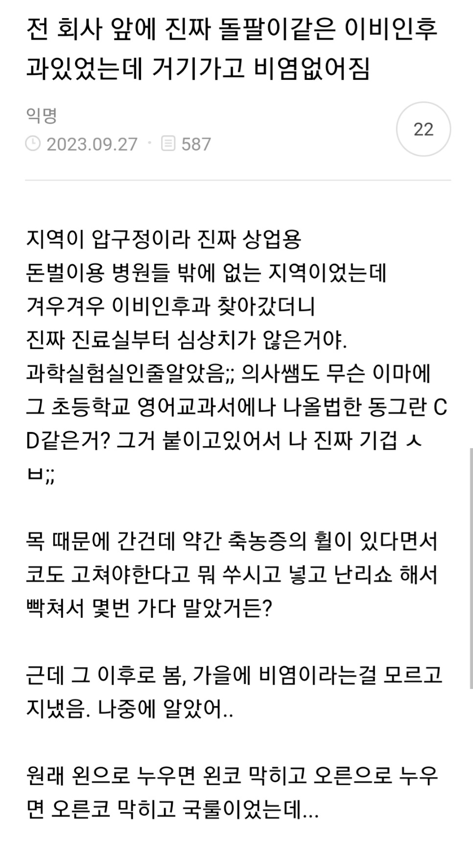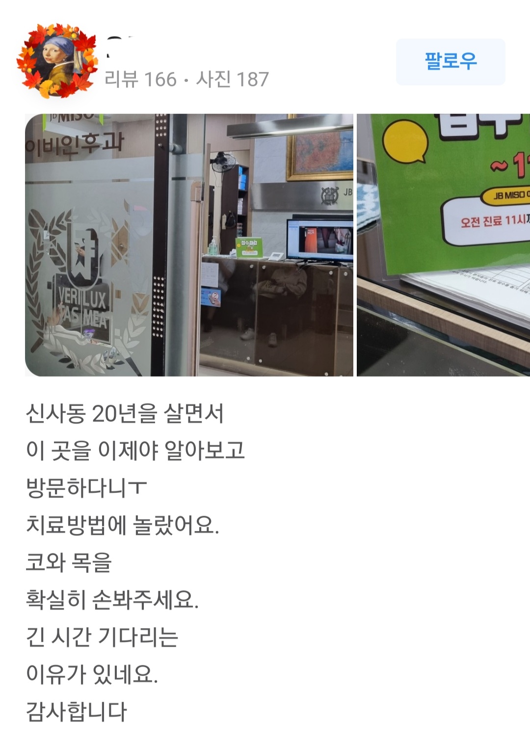 연예인 평점이 1점 or 5점 극과극이라는 압구정 이비인후과 ㄷㄷㄷ..JPG[100] 페이지 정보 작성자 쿠로 댓글 0건 조회 240회 작성일 23-10-31 20:33 본문 해당 이비인후과 리뷰를 보러감가자마자 뭘 그렇게 많이 들이미냐며 화난 사람들과화타를 만나 감격한 사람들이 공존 이전글임시완이 춘천마라톤에서 10km 45분대 찍은 이유[104] 다음글자전거 경기에서 나온 미친 장면[65] 111222